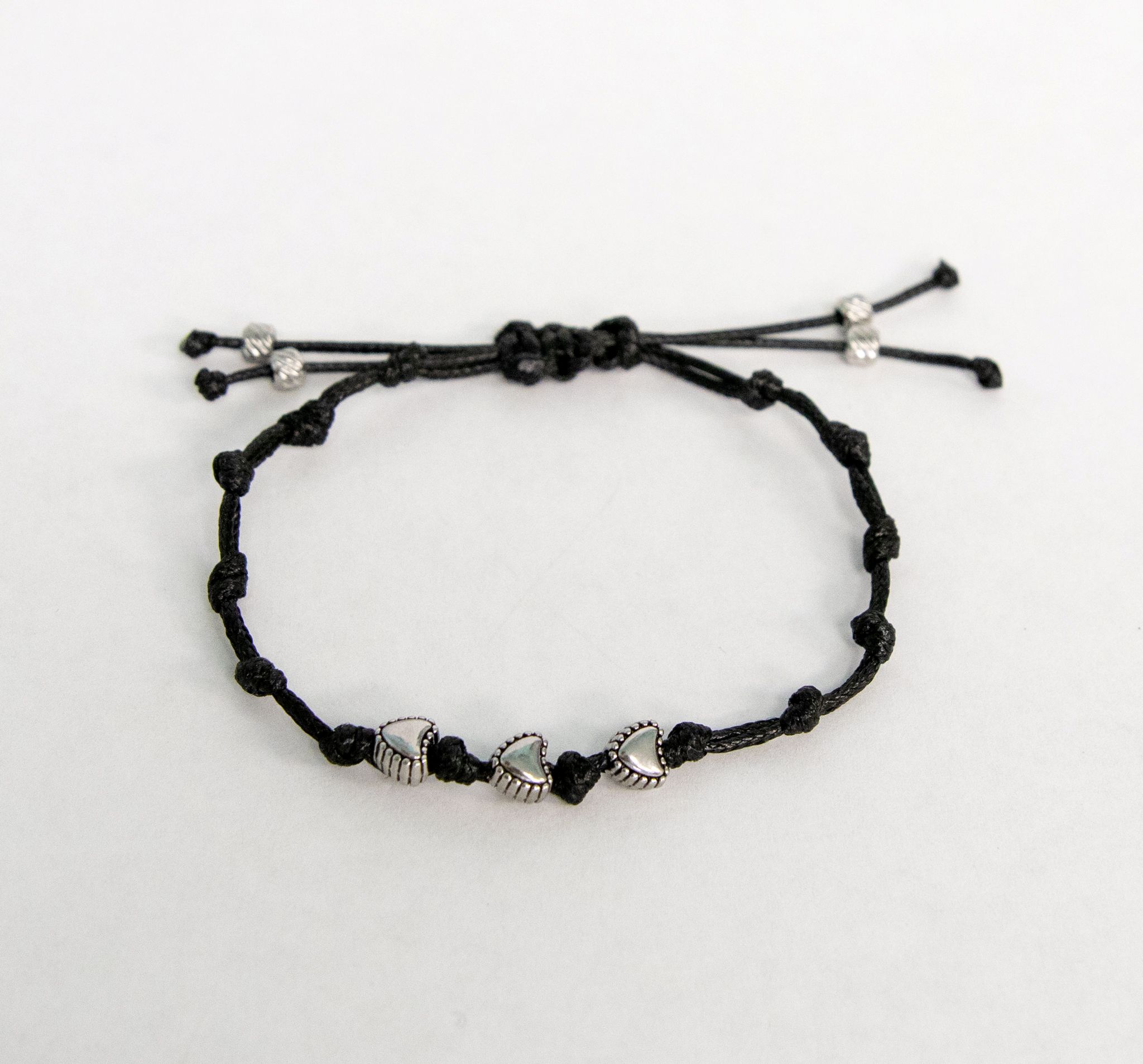 Understated elegance in black cord with three silver stainless steel heart charms. For the mom who prefers quiet strength and classic style, love that doesn’t need to shout to be felt.