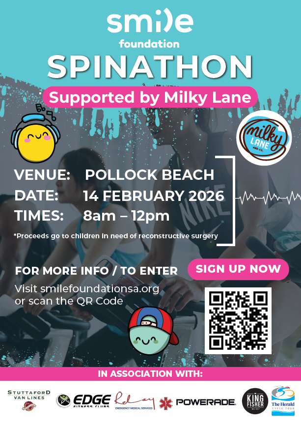 We extend a warm invitation for you to be part of this exciting event taking place at Pollok Beach in Gqeberha on Saturday, 14 February 2026, from 08h00 to 12h00. Gear up for the annual Smile Foundation Spinathon and be part of the movement to create lasting smiles.